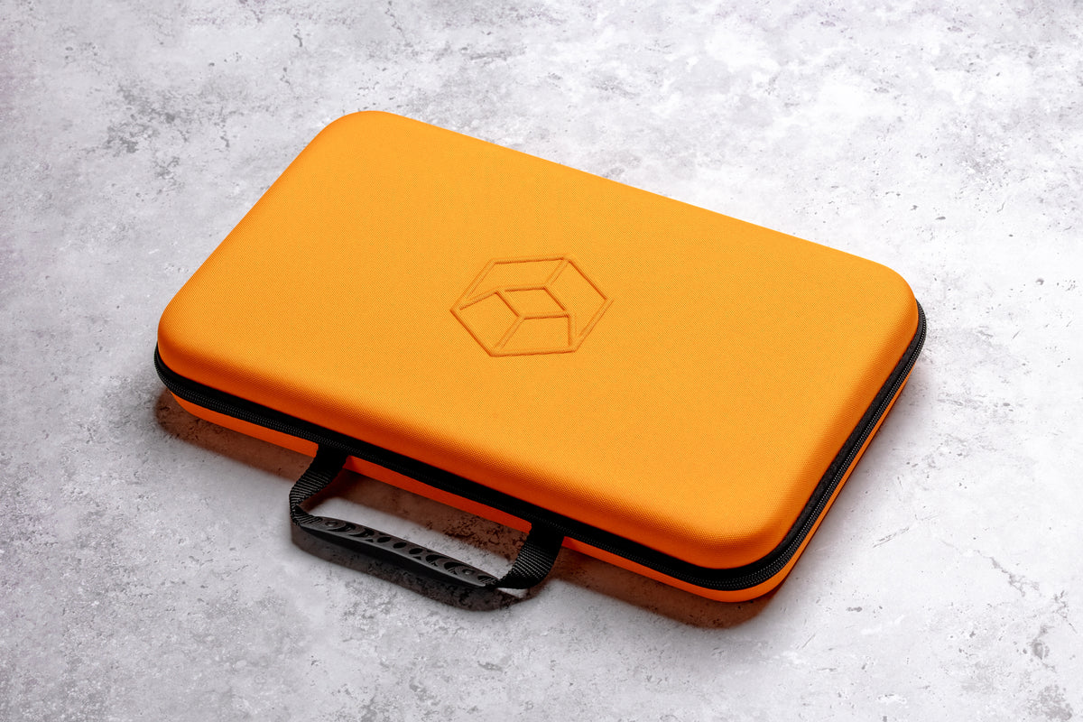 Pour tout achat du clavier kc_orange_60, tu reçois une pochette fournie aux couleurs de la collection pour le garder en sécurité et le protéger lors de chaque déplacement. A l’intérieur, plate et visserie sont soigneusement intégrées.